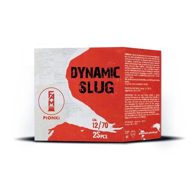 Dynamic SLUG šaudmenys, kalibro 12/70, skirti naudoti su lygiavamzdžiais ginklais. Dėl specialiai parinkto svorio šie šaudmenys yra itin tikslūs ir puikiai tinka naudoti trumpais ir vidutiniais atstumais.