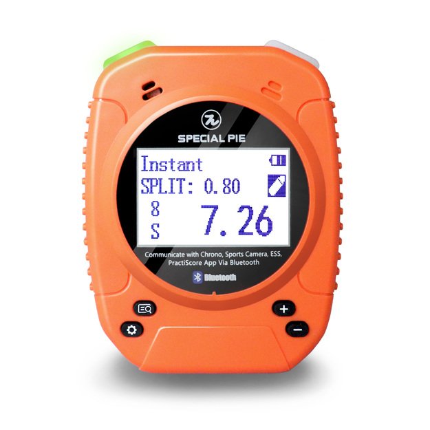 „Bluetooth“ duomenų perdavimas į PractiScore programėlę ir ESS programinę įrangą. Taip pat galima prijungti prie Special Pie chronografo ir šaudymo kameros, kad duomenys būtų sinchronizuojami.