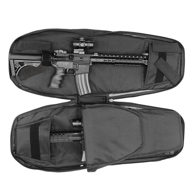 Nuimamas paminkštintas vidinis skirtukas apsaugo ginklus ir atskiria juos, kai transportuojami du kartu